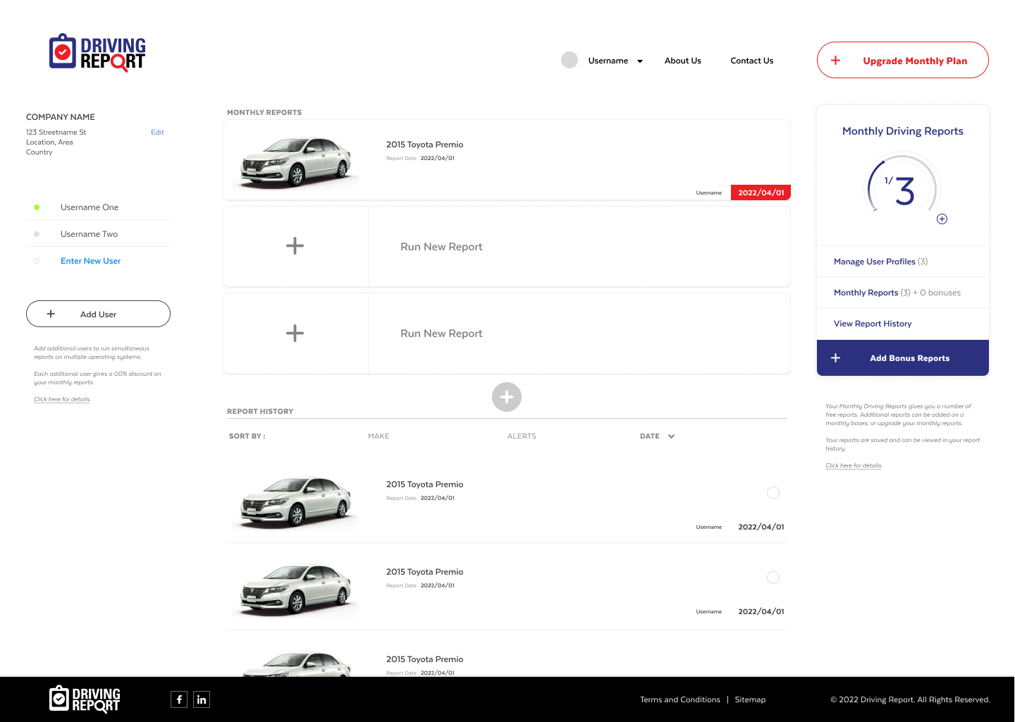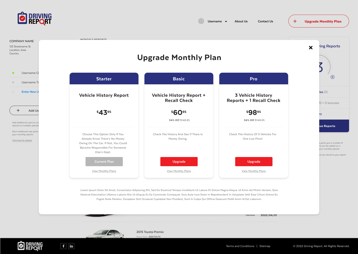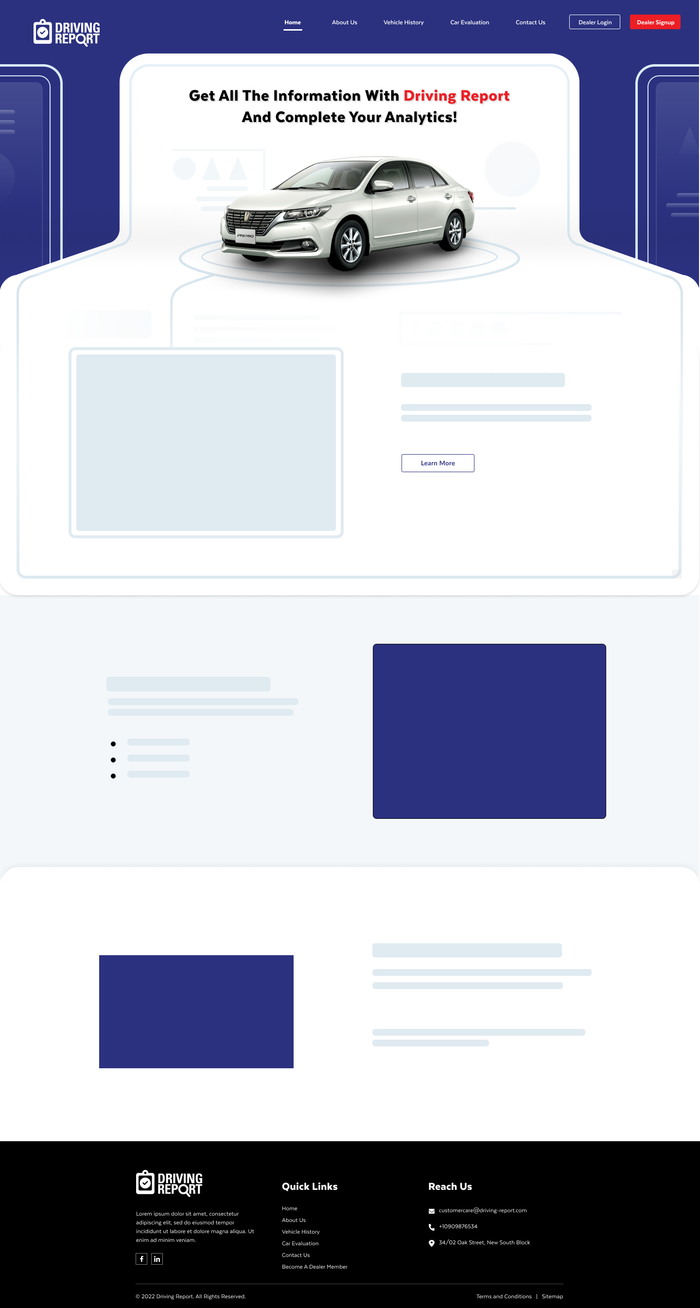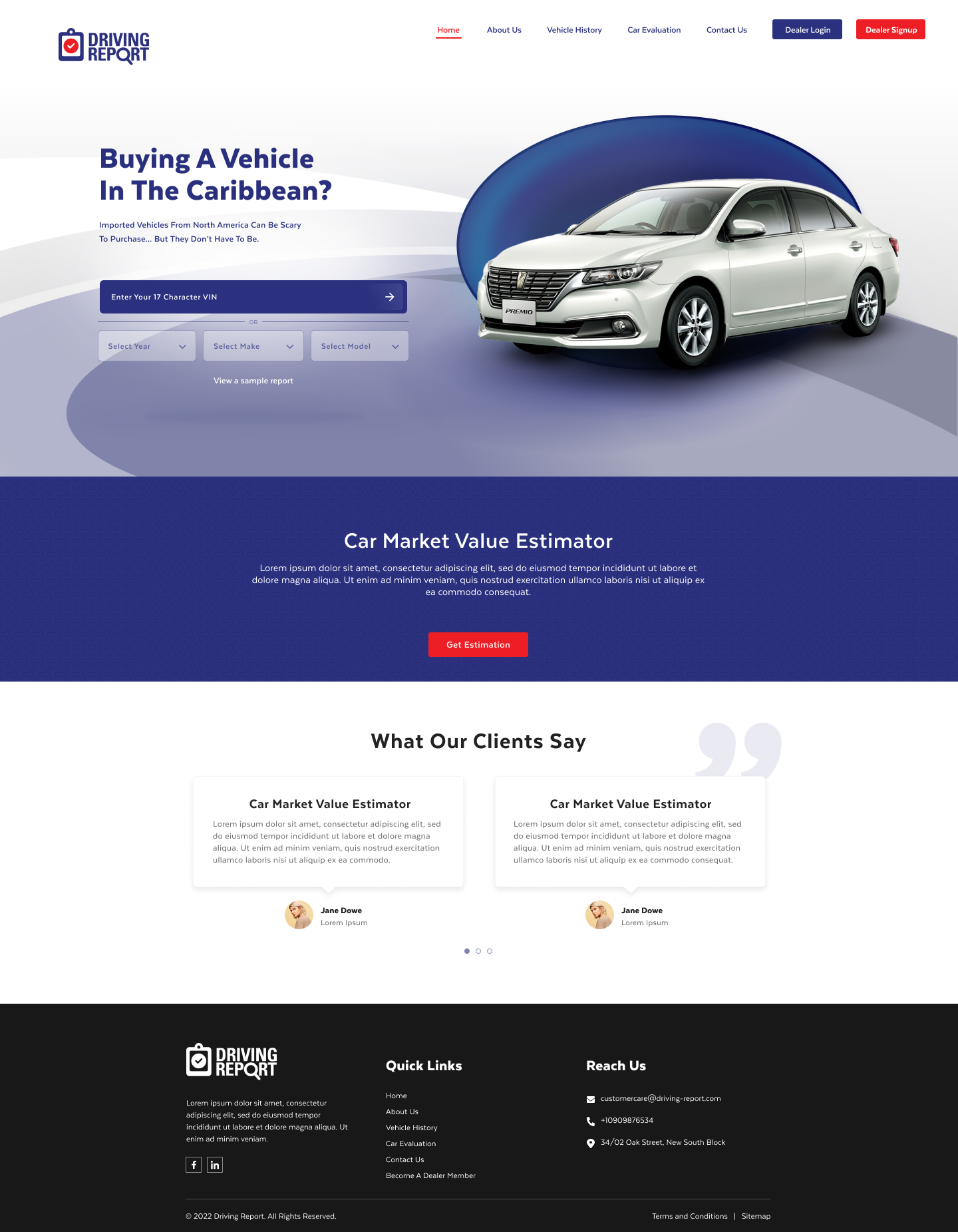 Public-facing responsive pages, configured for both mobile and desktop, featuring a user-interface application and dynamic reports, providing customers with a system to retrieve, store and view detailed reports on selected vehicles.